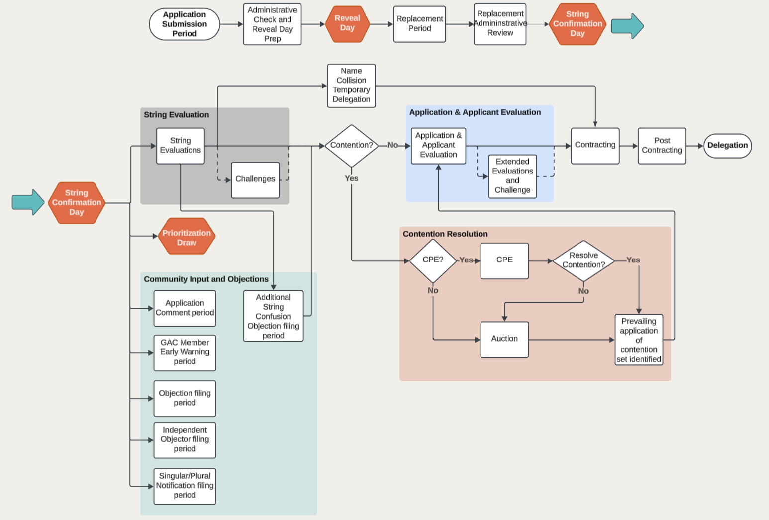 This applicant journey is designed to equip prospective applicants with essential information about each stage, including submission, pre-evaluation, community input, evaluation, string contention, dispute resolution, and contracting.