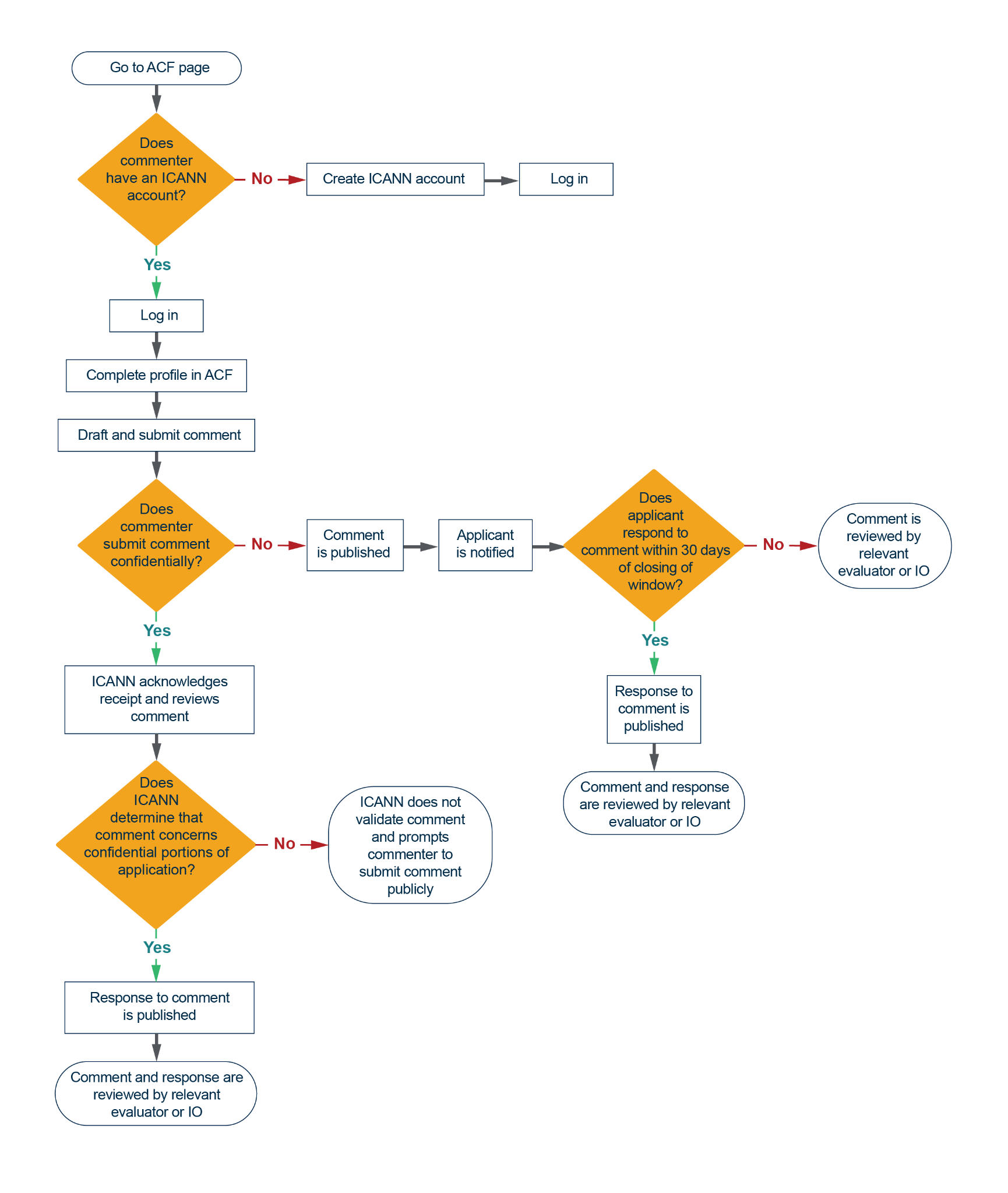 The flowchart below describes the process for comments submitted during application comment periods, as described in Section 4.1.2 Application Comments Timeline.