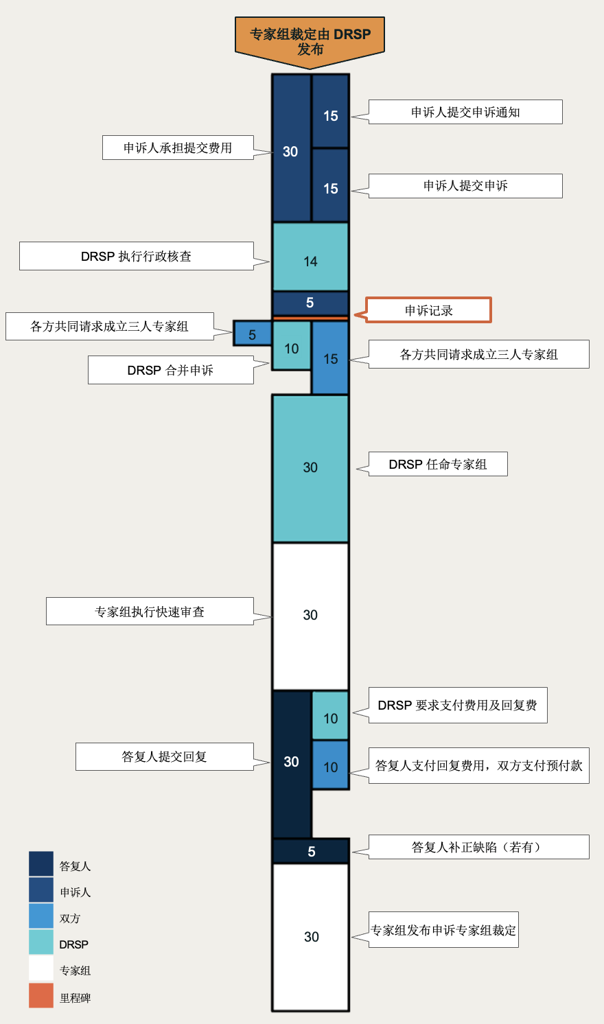 DRSP 与申诉专家组应尽合理努力,以确保申诉专家组裁决应在提交回复的截止日期后 35 天内作出。在特定情况下,如合并异议或经过与 DRSP 协商,可允许延长一小段时间。