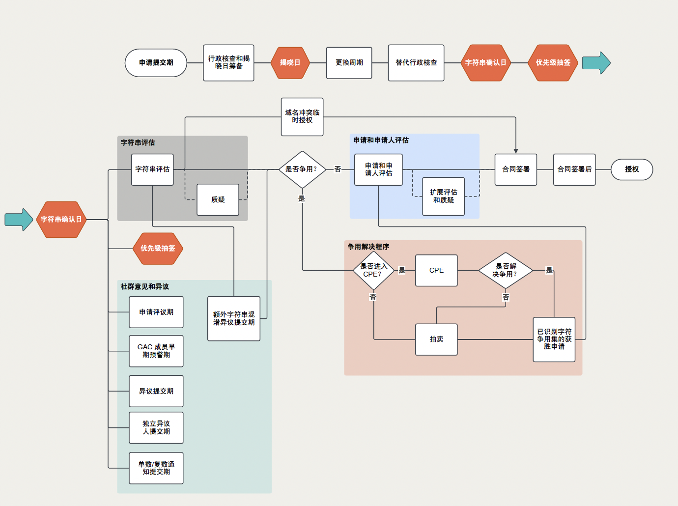 社群优先评估(第 5.4 节)和 ICANN 新 gTLD 拍卖(第 5.6 节)仅适用于字符争用集中的申请。↩︎