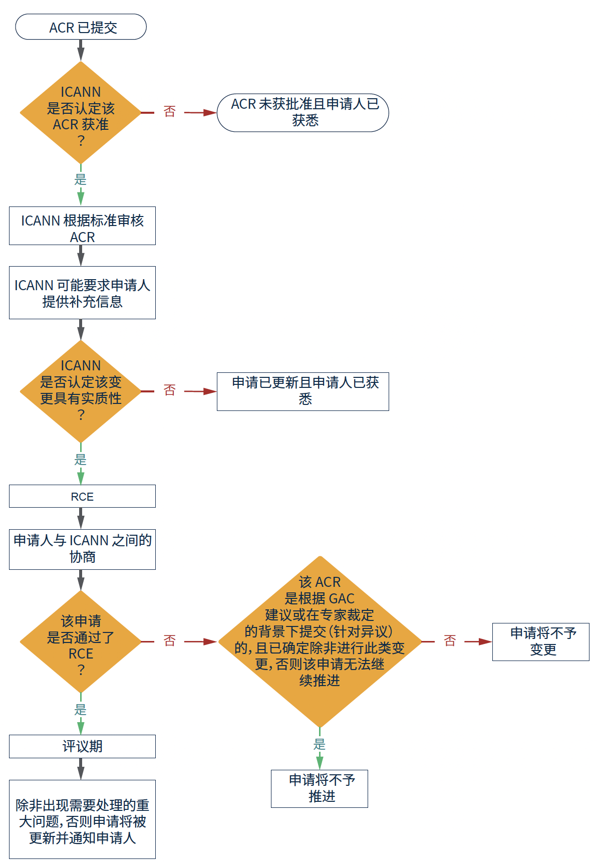 ICANN 审核所提交的材料后,将决定如何处理相关申请。申请人将收到结果通知,并且结果将发布在相关的申请状态页面上。